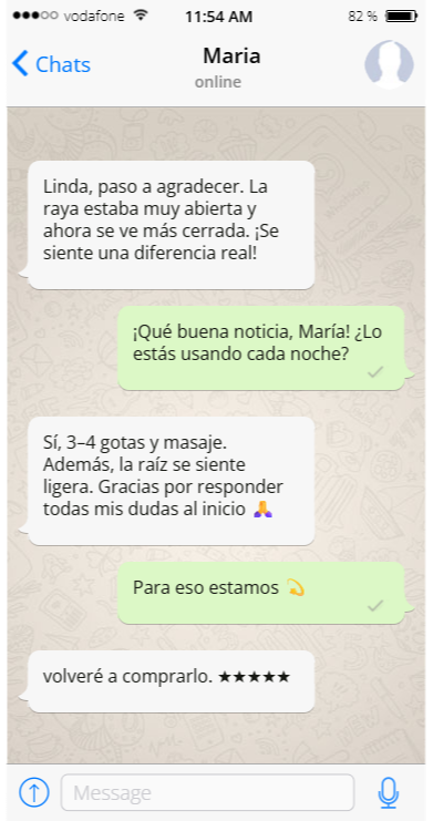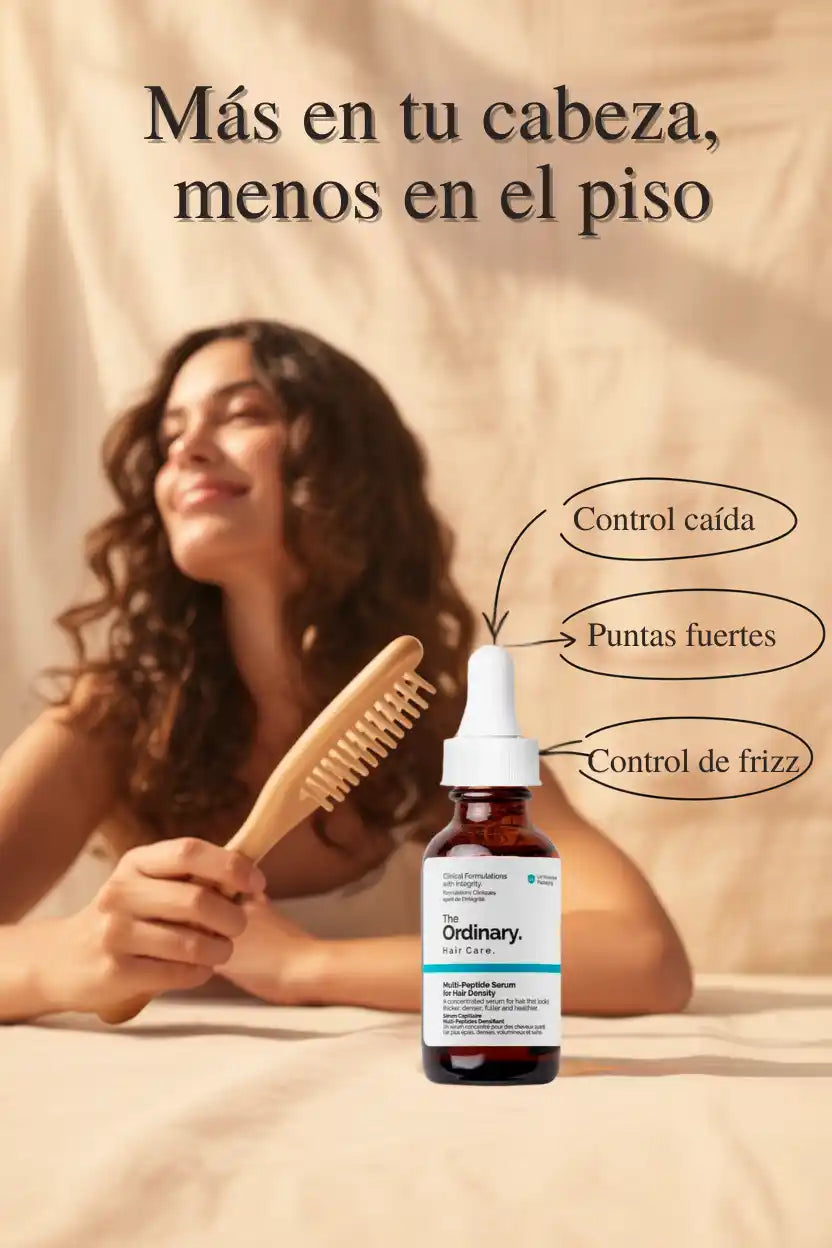Sí: los péptidos activan la raíz y mejoran el entorno del cuero cabelludo. Lo que suelen notar primero es menos pelo en el cepillo y mejor agarre; con constancia aparece mayor densidad visual y baby hairs en la línea. No engrasa, no pesa; trabaja en la raíz para un look más lleno.